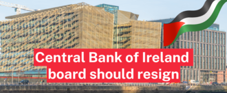Call for the Board and Directors of the Central Bank of Ireland to resignIt is vitally important that Ireland's Central Bank stop facilitating the sale of Israeli debt instruments within the EU. Ireland's government leaders and society have openly called Israel's actions in Gaza genocide. Ireland cannot say one thing and do another. Ireland and its institutions must be consistent and halt the facilitation for the sale of Israeli bonds by our Central Bank. The Irish directors of The Central Bank must resign on principle in support of Ireland's position and the management of The Central Bank must ensure the bonds are no longer available through its offices regardless of EU rules where ethical or humanitarian issues are not addressed.246 of 300 SignaturesCreated by Beara for Palestine