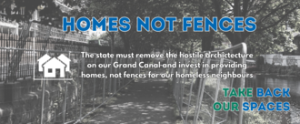 Homes not Fences at the Grand CanalSince May Waterways Ireland has erected steel fences all along the Grand Canal. Waterways Ireland's antisocial management of our canals, and the government's inhumane treatment of Dublin's homeless and homeless asylum seekers must be opposed. The erection of steel fencing along the Grand Canal this year is an escalation in a long-term policy of Waterways Ireland to prioritise anti-homeless action and infrastructure over their role in restoring, developing, and pinoting Ireland's waterways. These fences are more than physical barriers; they represent the deliberate exclusion of certain groups from public spaces and, by extension, from society. This exclusion is part of a broader pattern within our economic and political system that prioritises the interests of capital over those of ordinary citizens. The current actions of Waterways Ireland, including the erection of these barriers, disproportionately affect vulnerable groups such as asylum seekers, the homeless population, and working-class people. Public spaces are meant to be inclusive areas that foster community and provide safe havens for all, However, the recent actions by Waterways Ireland have turned these spaces into sites of exclusion and hostility. The fences have an estimated cost of €30,000 a week and its maintenance assumed to continue up to October could cost as much as €390,000. This money could be better spent addressing the housing crisis by providing real solutions and support for those in need. These barriers are tools of division and exclusion. They are being used to weaponize the immigration issue in Ireland, particularly to divide working-class communities that are already suffering from the deliberate degradation of social services, including public housing, healthcare, and education. Instead of listening to our calls for a humane and constructive solution to this disgraceful situation Waterways Ireland has instead referred to it as not ideal' and has called for 'restraint’. They have refused to engage in dialogue while simultaneously claiming a commitment to “actively involving communities in the stewardship of these vital resources”. The lack of communication, transparency and accountability can go on no longer. We as residents are speaking up. We demand 1. Remove fencing on the Grand Canal 2. No more hostile architecture 3. Stop evicting refugees and Irish people 4. Secure accommodation, tenancy rights and right to union representation through the Community Action Tenants Union for everyone homeless, in temporary, IPAS and emergency accommodation80 of 100 SignaturesCreated by Take Back Our Spaces
