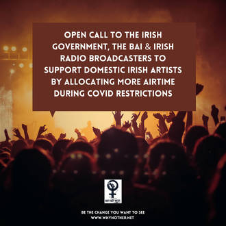 Open Call To The Irish Government, The BAI & Irish Radio Broadcasters to Support Domestic ArtistsWe need to safeguard the domestic Irish musicians, bands and artists within the music industry through a difficult time during Covid. This is an open call to the Irish Government, the BAI & Irish Radio Broadcasters to support domestic artists by allocating more airtime to them on the radio. If Irish Radio continues exporting the majority of royalties to International artists during such a harrowing time in our history - it will equate to our domestic artists suffering even more hardship, some having to give up music careers altogether. We ask Minister Martin, those in power within the Irish government, the BAI (Broadcasting Authority of Ireland) and those who work in Radio Broadcasting to consider allocating more airplay and heavy rotation to our domestic artists to safeguard their careers in such a financial crisis for them, with gigs being cancelled and their music and arts scene being one of the worst affected industries during covid.151 of 200 SignaturesCreated by Linda J Coogan Byrne